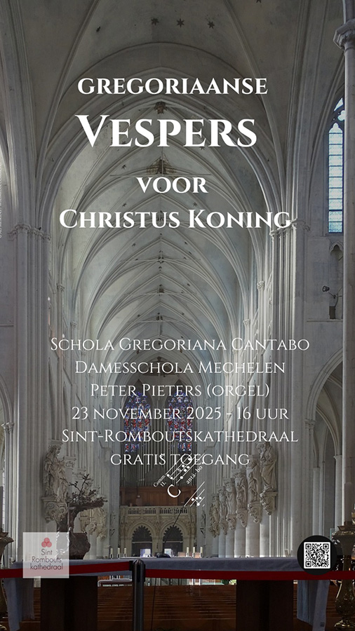 Gregoriaanse vesperdienst voor Christus Koning, verzorgd door de Schola Gregoriana Cantabo. Begeleiding door Peter Pieters op orgel.
